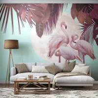 Fototapeta Premium Canvas - Tři ptačí grácie - Plameňáci, Ptactvo, Příroda - 200x140 cm