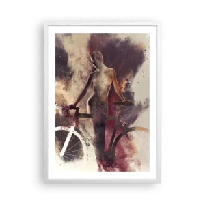 Plakát v bílém rámu - Cyklistická duše v mramorových tvarech - 50x70 cm