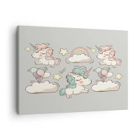 Obraz na plátně - Roztomilí jednorožci na pastelovém pozadí - 70x50cm - Určitě existují… - Moderní nástěnná dekorace do obývacího pokoje a ložnice ARTTOR