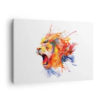 Obraz na plátně - Barevný portrét lva v dynamickém stylu - 70x50cm - Vybuchnout hněvem - Moderní nástěnná dekorace do obývacího pokoje a ložnice ARTTOR
