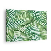 Obraz na plátně - Zelené tropické palmové listy na světlém pozadí - 70x50cm - Pod zeleným baldachýnem - Moderní nástěnná dekorace do obývacího pokoje a ložnice ARTTOR