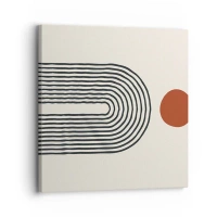 Obraz na skle - Grafická abstrakce s čarami a kruhy v retro stylu - 70x50cm - Magnetismus tvarů a barev - Moderní nástěnná dekorace do obývacího pokoje a ložnice ARTTOR