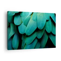 Obraz na plátně - Detail peří v odstínech zelené - 70x50cm - Přesnost papouščí povahy - Moderní nástěnná dekorace do obývacího pokoje a ložnice ARTTOR