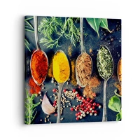 Nástěnné hodiny - Barevné koření a bylinky uspořádané na lžičkách - 30x30cm - Kulinářská magie - Moderní nástěnná dekorace do obývacího pokoje, kuchyně a ložnice ARTTOR