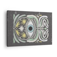 Obraz na plátně - Symbolické oko obklopené abstraktními vzory - 70x50cm - Kmenové rituály - Moderní nástěnná dekorace do obývacího pokoje a ložnice ARTTOR