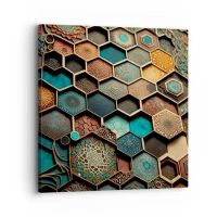 Obraz na plátně - Barevné ornamenty v šestiúhelníkových vzorech - 70x50cm - Arabské ornamenty – variace - Moderní nástěnná dekorace do obývacího pokoje a ložnice ARTTOR