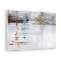 Obraz na skle - Abstraktní obraz s jemnou kombinací šedé, bílé a zlaté barvy. - 70x50cm - Za závojem vzduchu - Moderní nástěnná dekorace do obývacího pokoje a ložnice ARTTOR